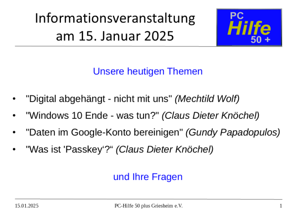Wie immer erhielten unsere Mitglieder den kompletten Foliensatz zum Nachlesen. (15.01.2025)